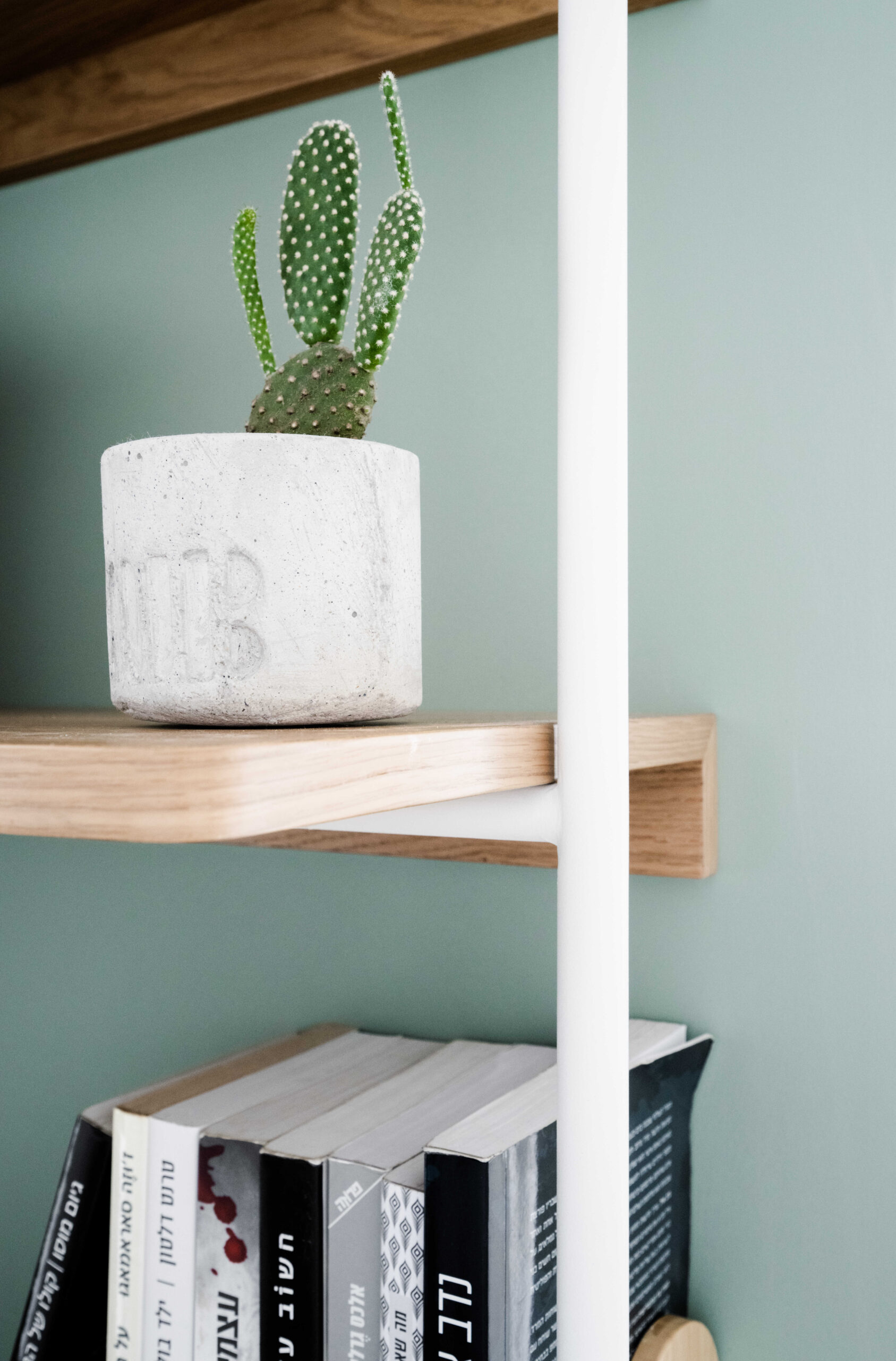 המרפסת הגדולה שולבה כחלק אינטגרלי מהבית, עם פינות אירוח מותאמות לסגנון הפנים. גם בפרטי היומיום – מגירות כניסה, מדפי ספרים וסולם ברזל-עץ קליל – ניכר החיבור בין פונקציונליות לעיצוב.